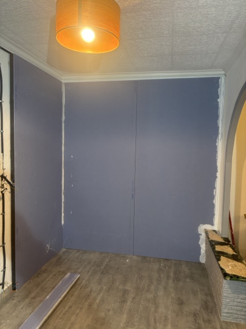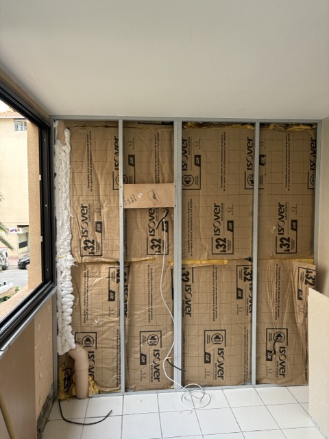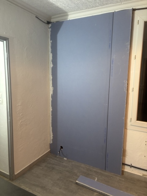 - Isolation des murs intérieurs et extérieurs (placo, laine de verre, panneaux isolants)
